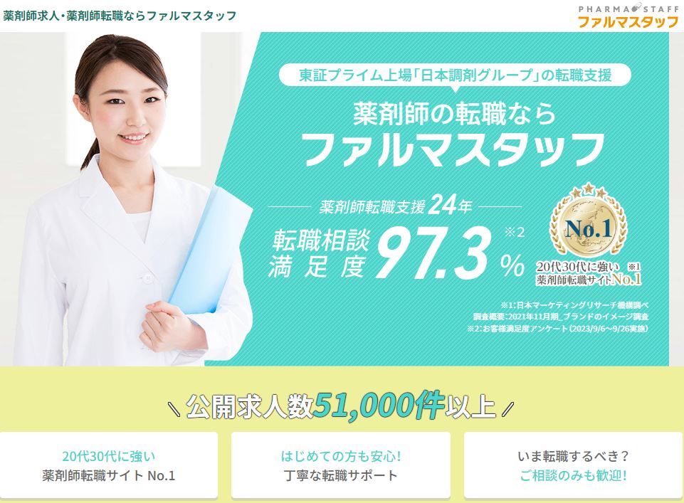 「ファルマスタッフ」は、大手調剤チェーンが運営する薬剤師転職サービスです。